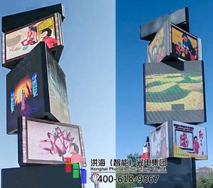例如,近期洪海在給天津河西區(qū)一個(gè)客戶安裝的LED數(shù)字旋轉(zhuǎn)魔方柱。